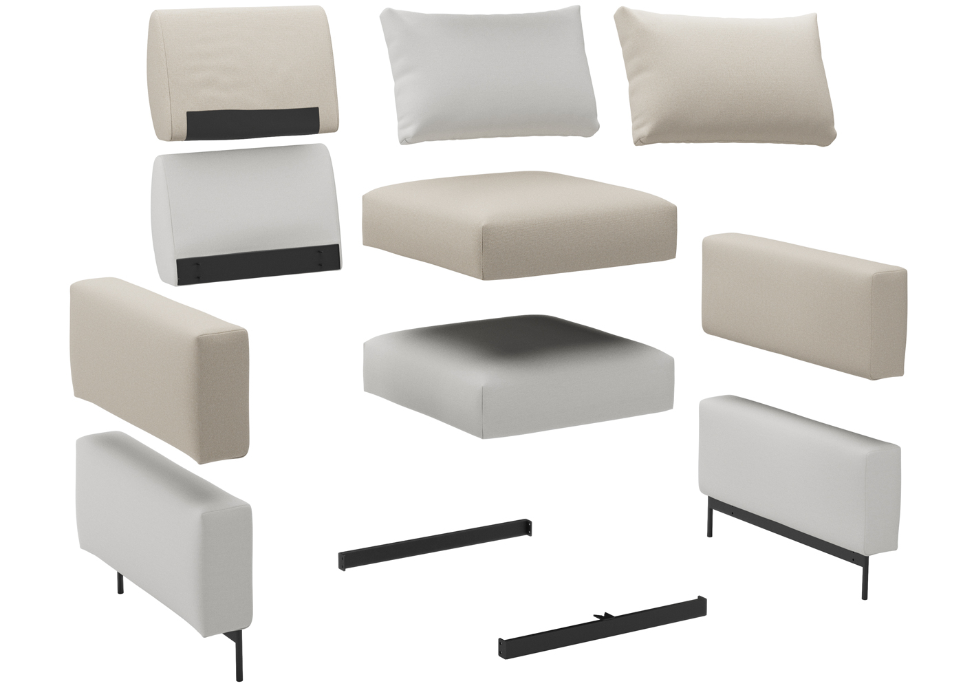 Modularna zasnova omogoča, da kavč prilagodite svojemu prostoru: dodajte tabure ali spremenite postavitev elementov. Prevleke z zadrgami so enostavno snemljive in pralne, kar omogoča hitro osvežitev videza. Flat-pack pakiranje zmanjšuje CO₂ emisije pri transportu in olajša vnos in montažo, tudi v manjših stanovanjih.
