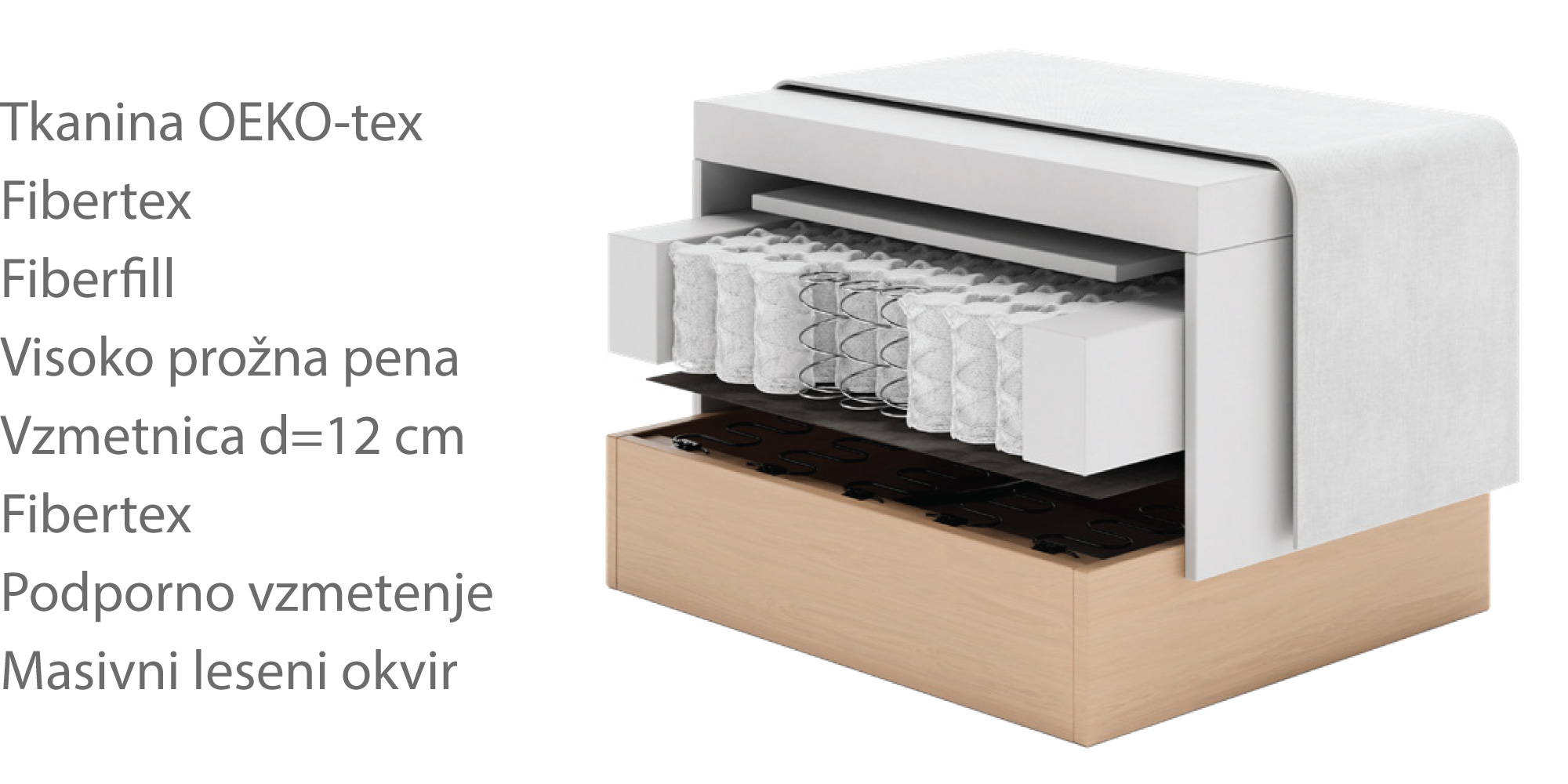 ✔ Kombinacija visokoprožne pene in žepkastega vzmetenja za vrhunsko oporo