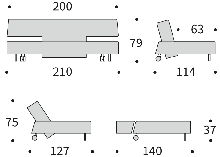 ✔ 3-stopenjski mehanizem – enostavno preoblikovanje iz kavča v posteljo ali sproščeno ležanje