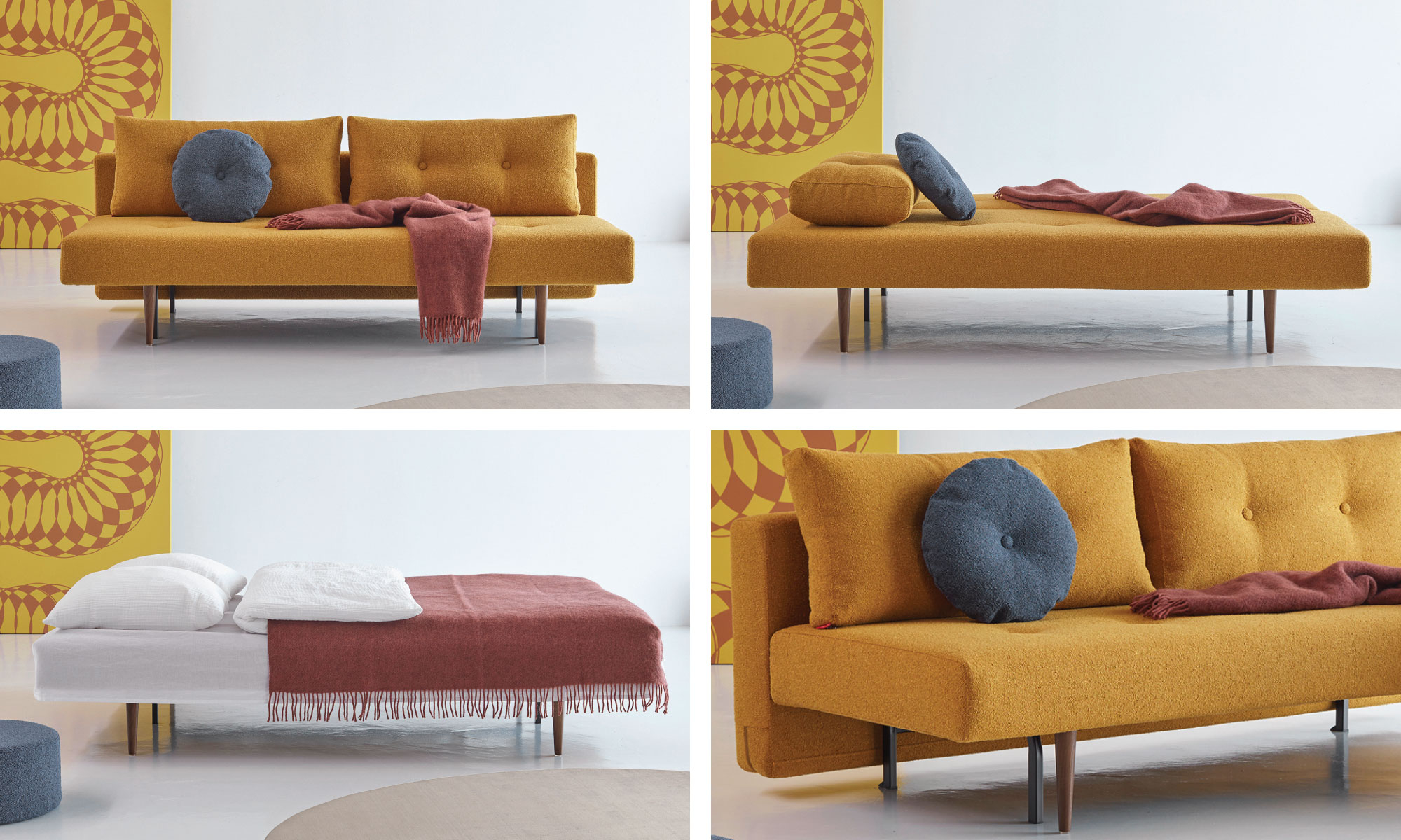 Kavč Recast je ena izmed najbolj prepoznavnih rešitev danskega podjetja Innovation Living, ki združuje skandinavsko estetiko, udobje in praktičnost. Njegova preprosta, retro oblika se lepo zlije v vsak interier – od manjših urbanih stanovanj do večjih dnevnih sob. Funkcionalen dizajn omogoča, da Recast služi kot udoben sedež, počivalnik ali postelja za dve osebi – vse v enem kosu pohištva.